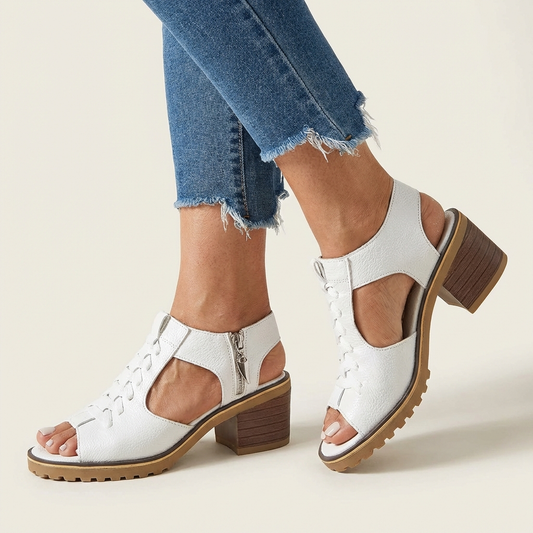 Monica | Orthopedic Block Heel Sandals with Side Zipper